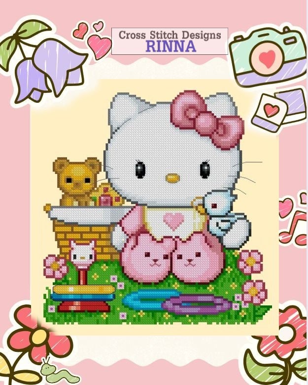 Cute BABY KITTY and TOYS - Cross Stitch PDF Downloadable Pattern