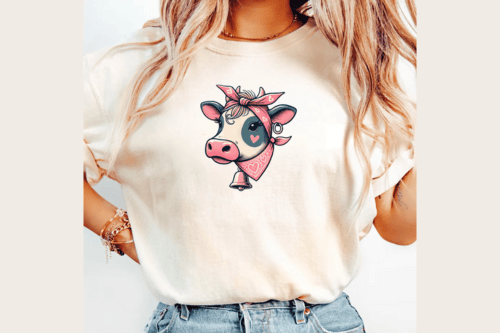 Celebrate Valentine’s Day with this adorable Cow T-Shirt Design, featuring a cute cow adorned with hearts! A charming and unique gift for women who love farmhouse vibes and Valentine’s Day cheer.