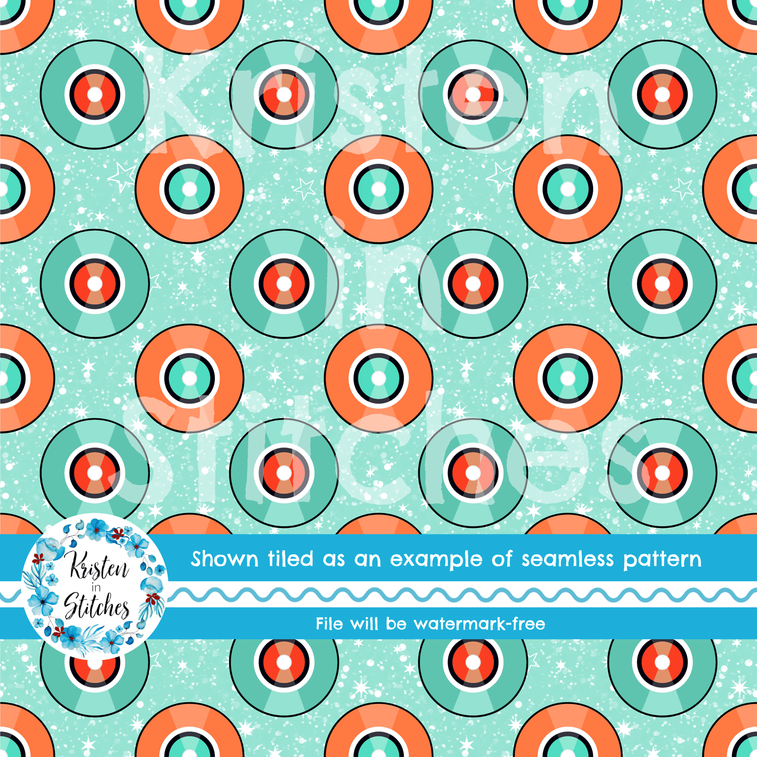 Showgirl Orange and Mint Albums Seamless Pattern