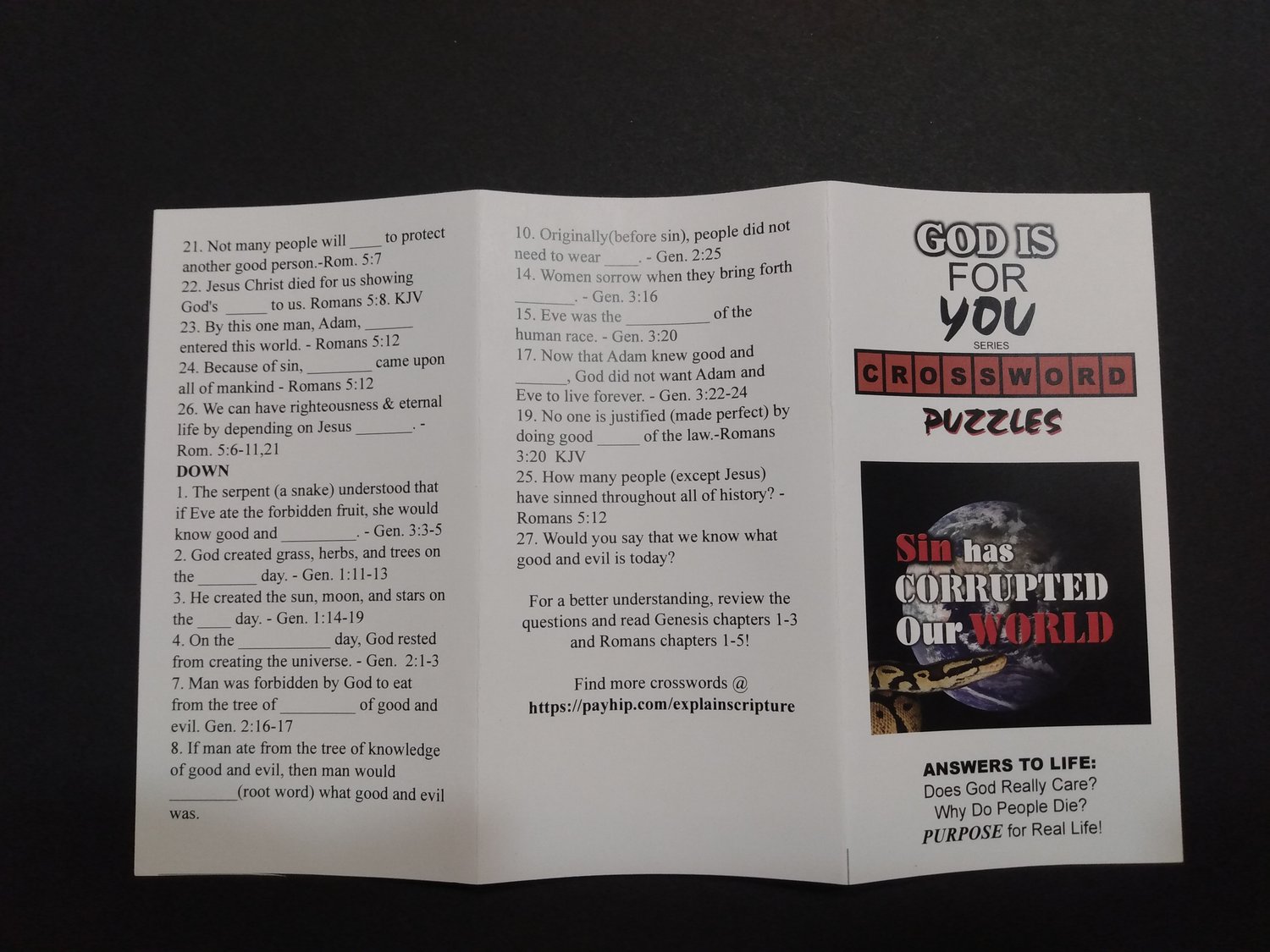 Crossword Puzzle Tracts 200 Pamphlets Sin Has Corrupted our WorldGod For You KJV