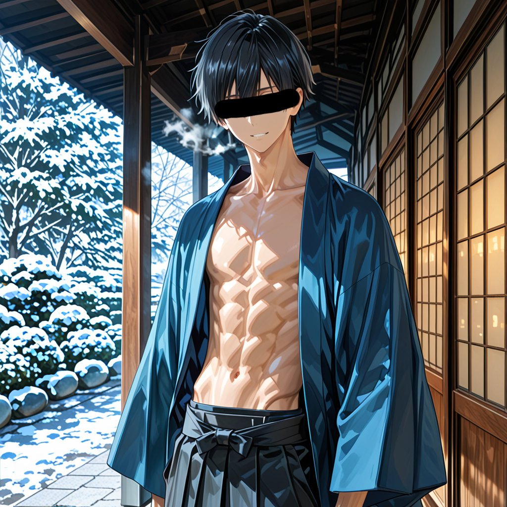 日本の正月をテーマに、着物を着用している男性を、キャラクターごとにお任せ作成しました。男らしいキャラクターの魅力を思い切って表現しました。