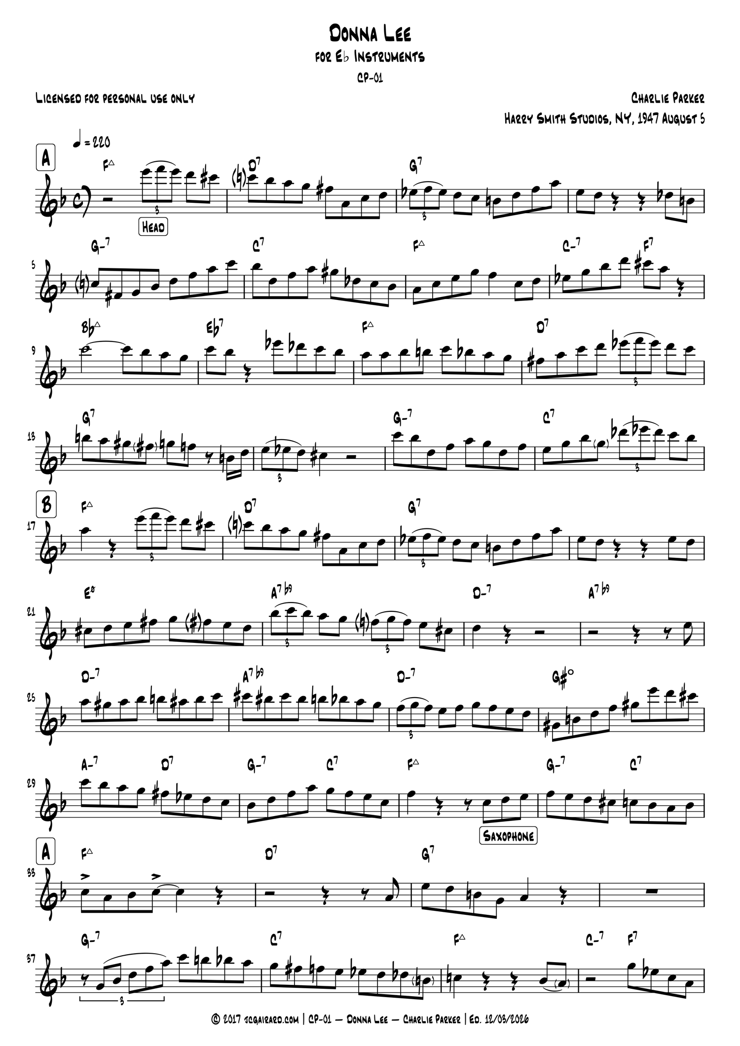 Donna Lee - Charlie Parker (1947) - full transcription for C, Eb, Bb instruments
