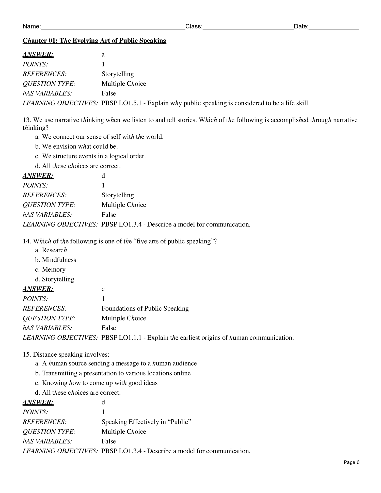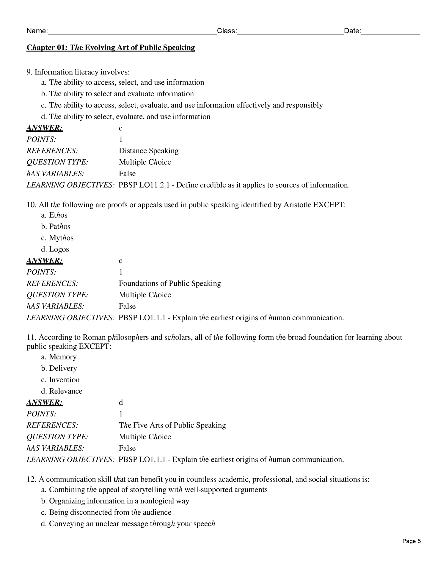 Enhance your public speaking knowledge and prepare for exams with this comprehensive test bank.