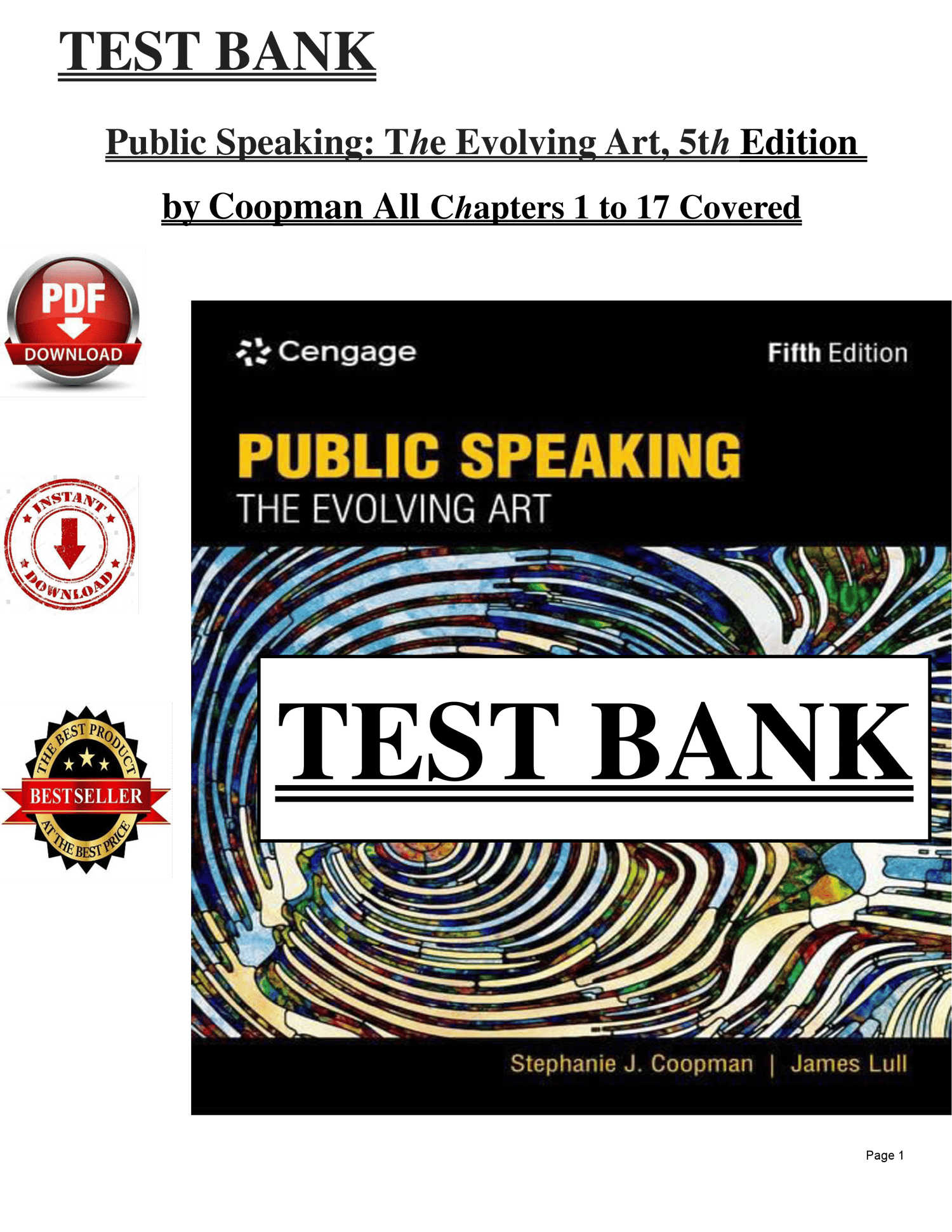 Access the complete Test Bank for Public Speaking: The Evolving Art, 5th Edition by Stephanie J. Coopman and James Lull. This resource includes all chapters with exam-style questions and solutions designed to strengthen communication and presentation skills.