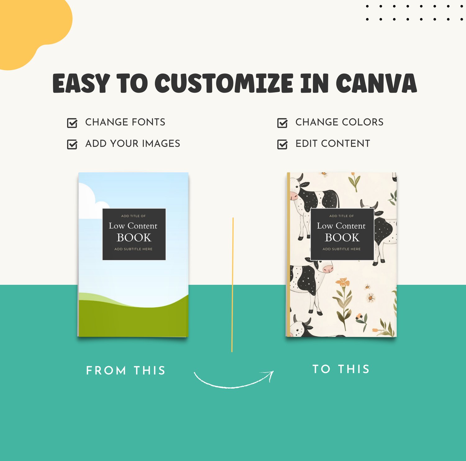 - 30 Ready-Made Canva Templates: Drag-and-drop designs for low and no-content books, optimized for Amazon KDP.