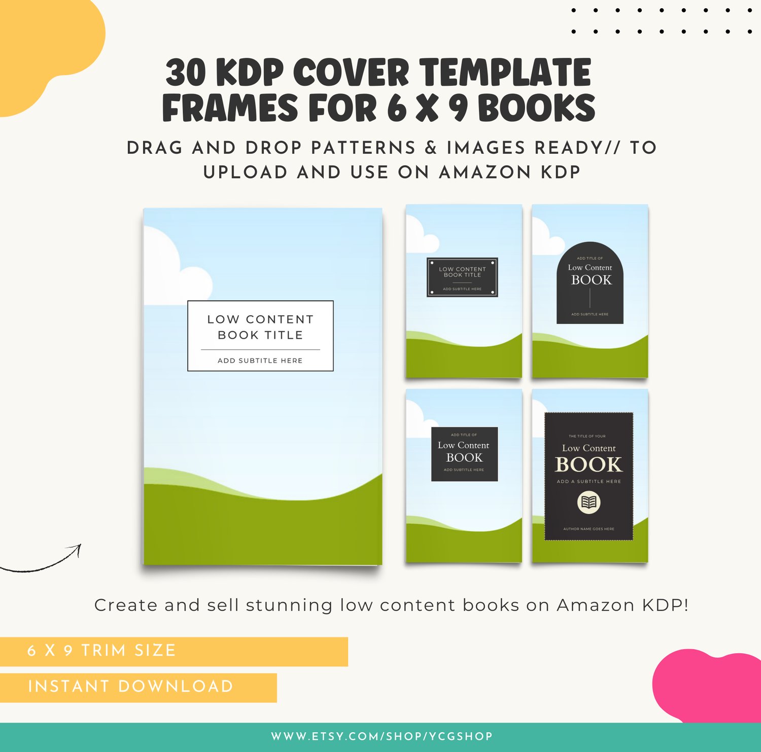 With these templates, you can easily drag and drop images and patterns to create stunning 6 x 9 low-content books that stand out. Save time, reduce design stress, and start earning passive profits with these ready-to-use templates.