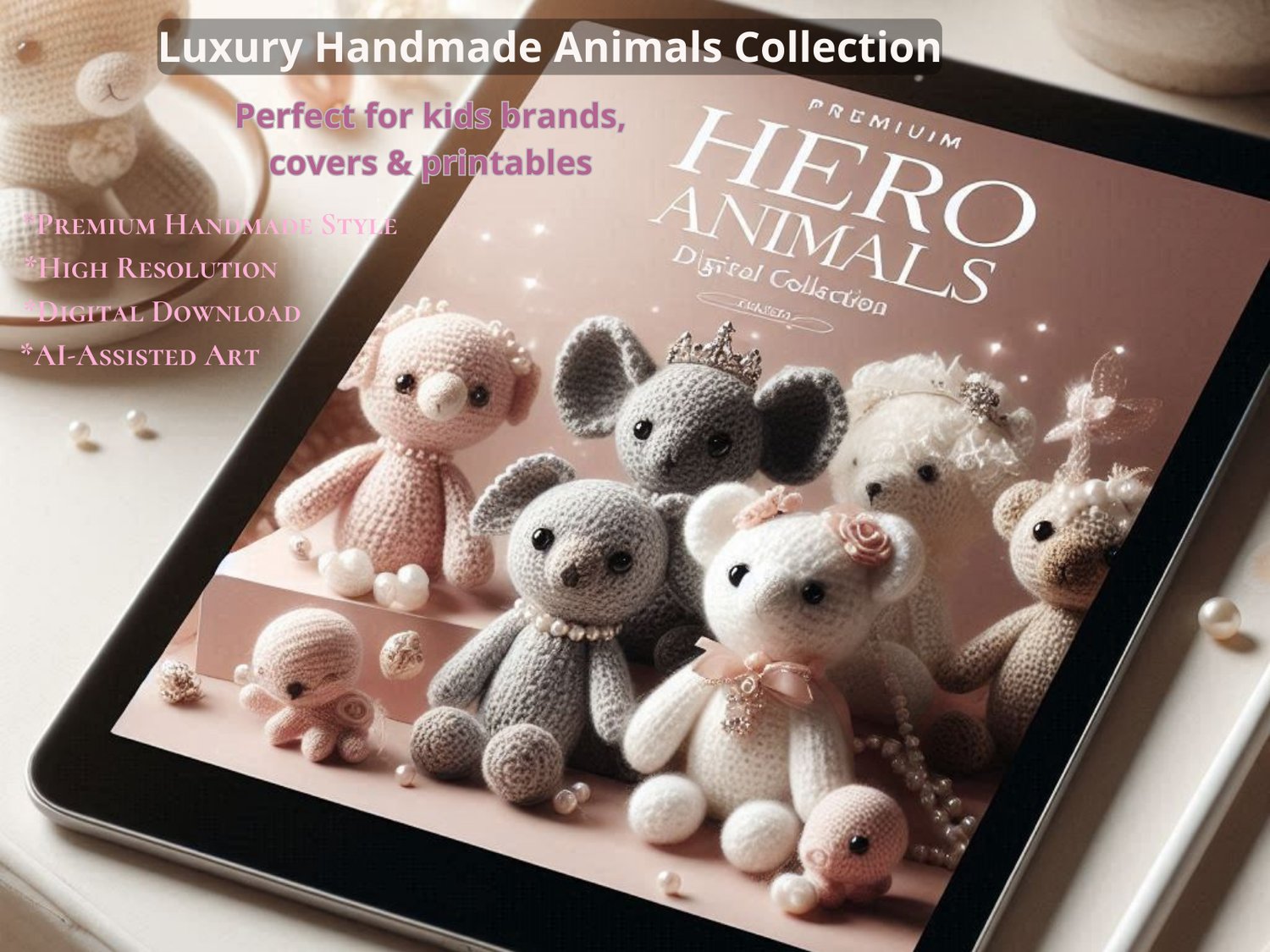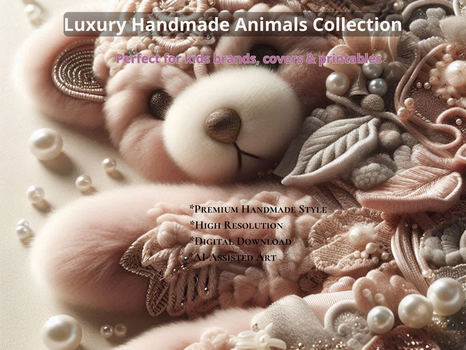 HAYAT Handmade Luxury Animals Collection is a premium digital clipart pack inspired by artisanal crafts, combining the beauty of crochet, soft velvet, delicate pearls, and crystal-like details in a cozy pastel style.