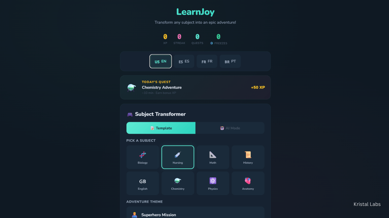 LearnJoy turns education into a game. XP for correct answers. Achievements for streaks. Progress bars that make them want to keep going.