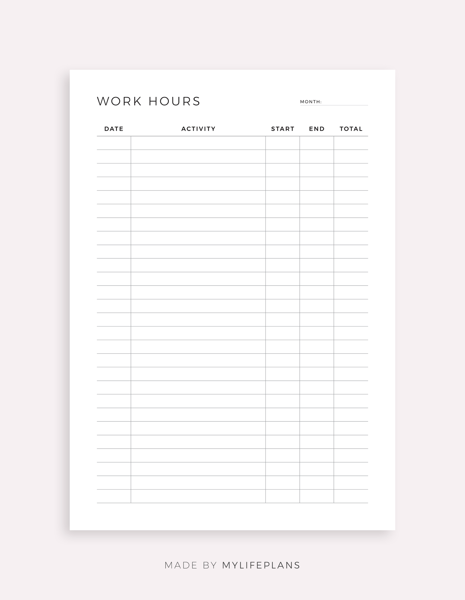 Working Hours Log Printable, Work Time Tracker, Activity Tracker, Time Spent, Task Tracker