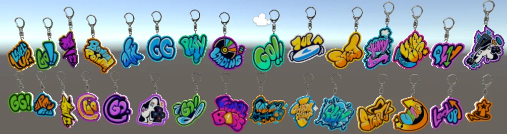 I generated some wonderful keychains using the AckeyMaker script by phio! Which you can get here: https://phio.booth.pm/items/8114465