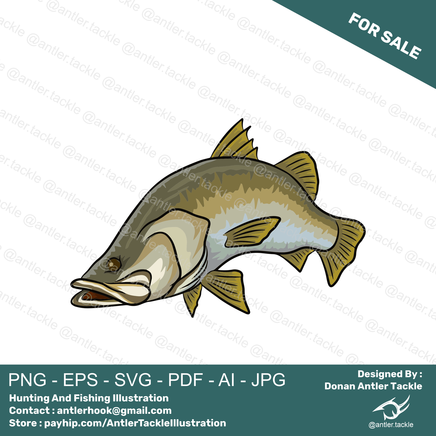 Barramundi Fish Fishing Illustration Logo Exclusive License Designed By Donan Antler Tackle