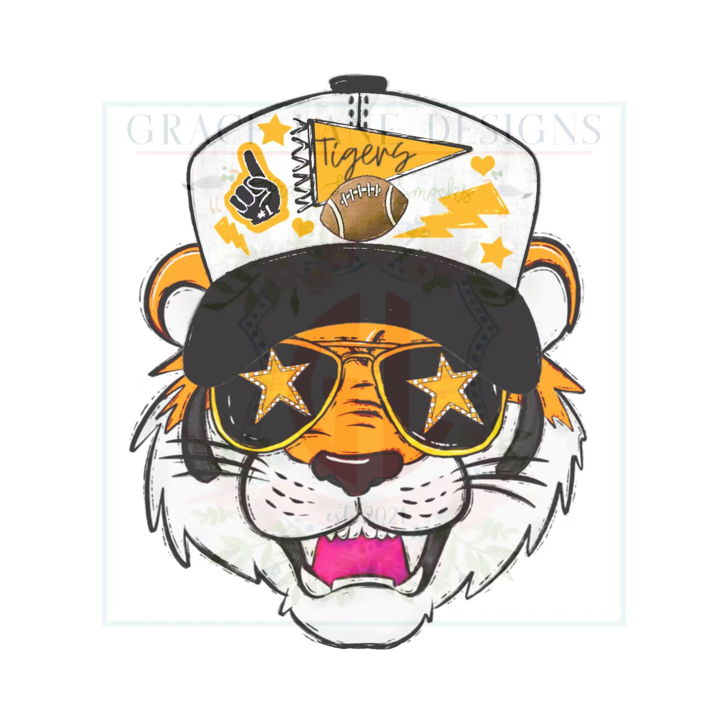 Black Yellow Gold Tiger Trucker Hat png Hand Drawn Procreate Digital Download Tailgate Football Game Cheerleader