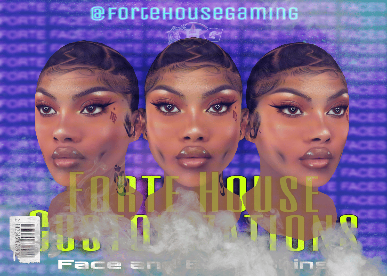 - Custom chin hair, tattoos, and lip detailing for added personality