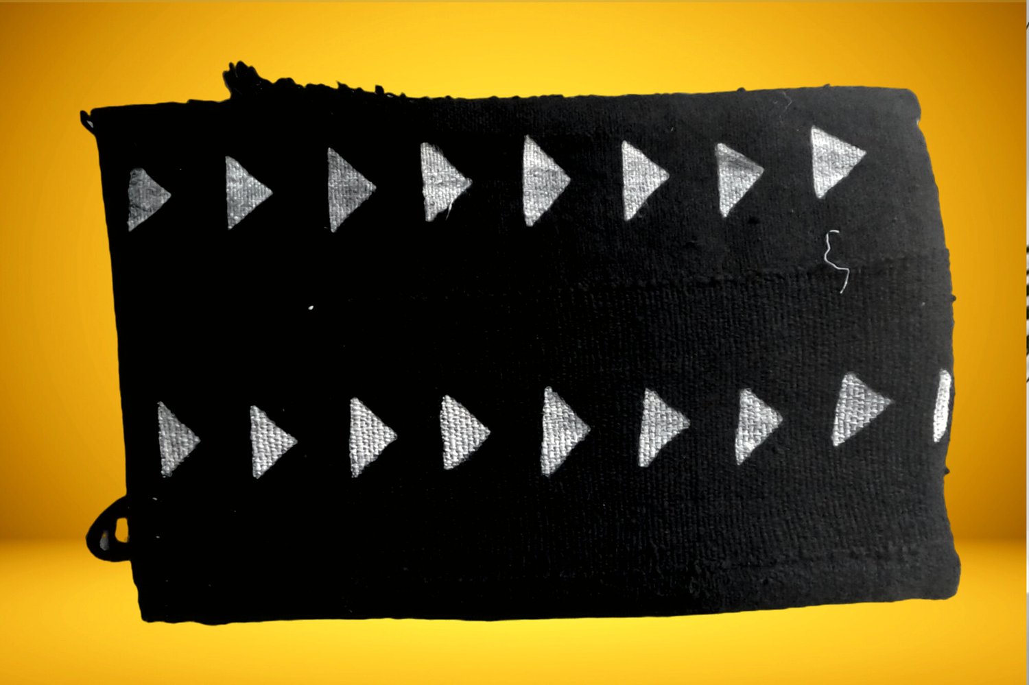 This stunning piece of traditional mud cloth, also known as ‘bogolanfini’, features a triangular pattern in which the triangles symbolize strength, and the white color represents victory or rebirth.