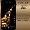 Elevate your device with this exclusive digital wallpaper, featuring a stunning contrast between deep, true-black space and hyper-realistic liquid gold textures. Designed specifically for OLED and AMOLED displays, this artwork maximizes your screen's potential while conserving battery life by keeping pixels truly black.