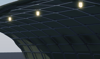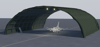 A very simple tent-style hanger, with lights, a few props, and a taxi-line marking.