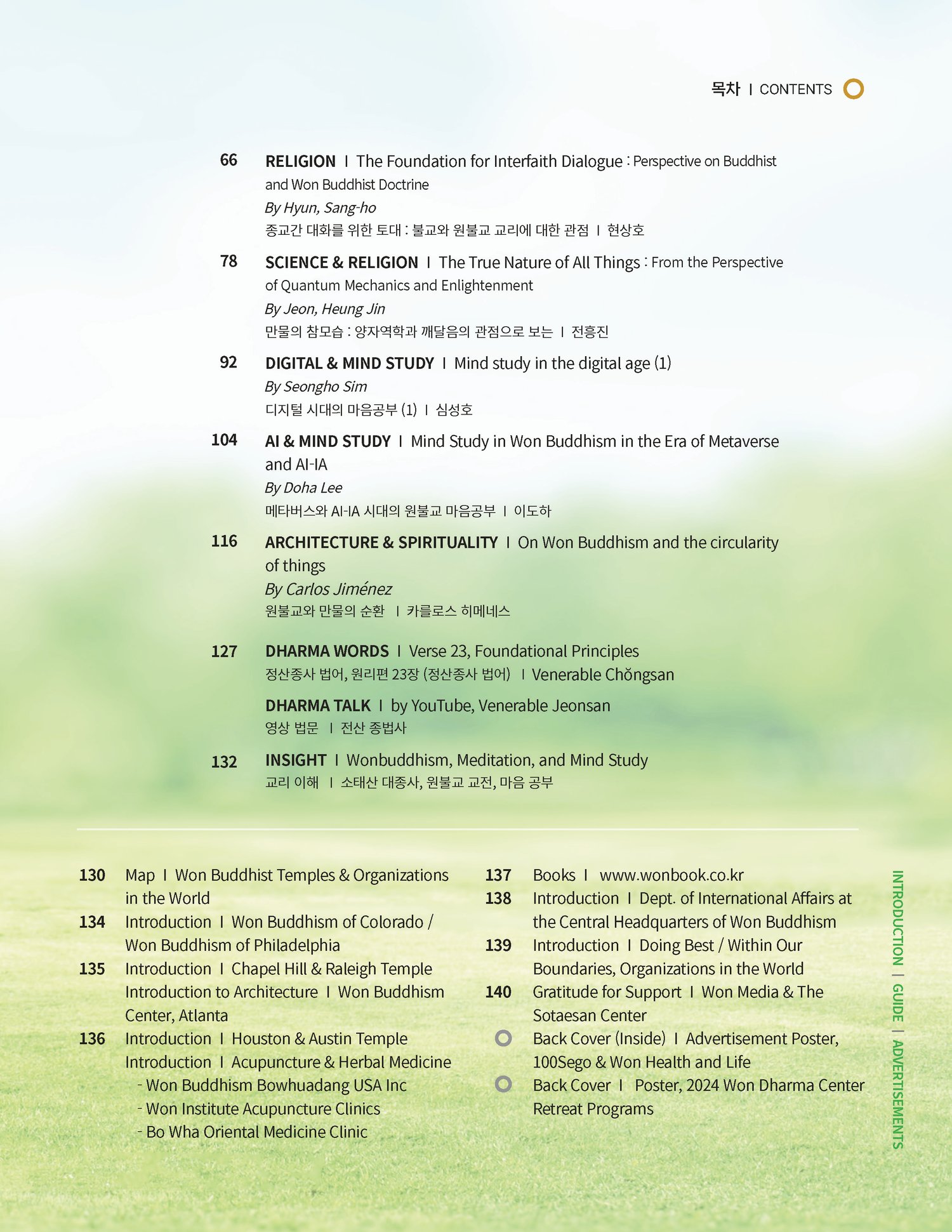 meditation practices, life, humanity, Won Buddhism, and more. MIND STUDY is published in both English and Korean, twice a year.