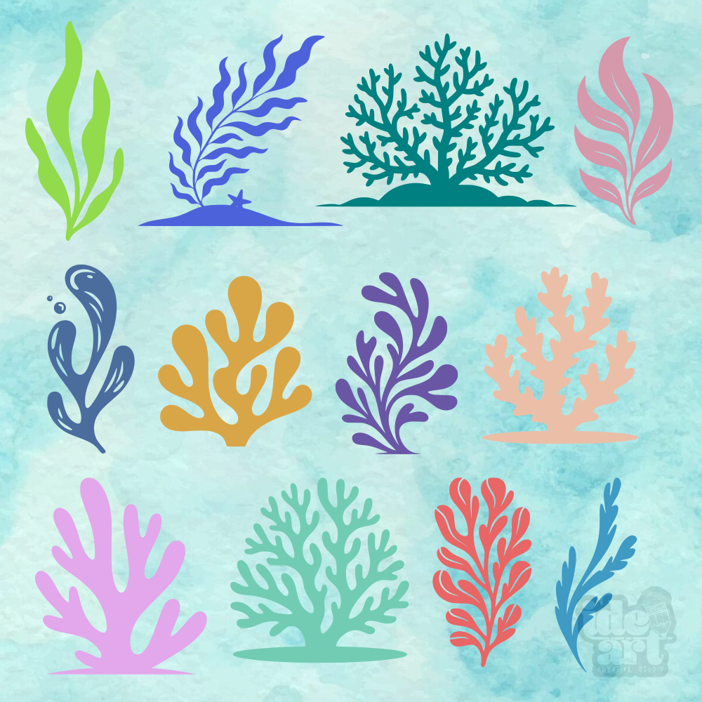 Immerse yourself in creativity with this set of 12 seaweed and coral designs, perfect for adding a fresh, marine touch to your projects. These digital files are ideal for creative stationery, decor, vinyl, and more, thanks to their versatile and easy-to-use style. Each silhouette is vectorized with high quality, ensuring a clean, precise cut that you can scale to any size you need without losing detail.