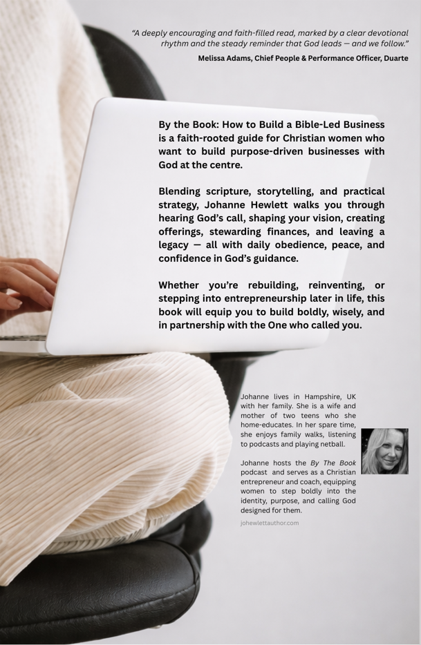 In By the Book: How to Build a Bible-Led Business, Johanne Hewlett gently guides you on a practical, Spirit-led journey from idea to impact.