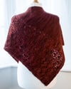 Foxtails is a scalene triangle shaped shawl worked in garter rib, garter stitch, and "leaf and weave" stitch. Inspired by the colourway of the yarn it's knit in - Kitsune, which is Japanese for fox - the leaf and weave section is reminiscent of a bushy fox tail.