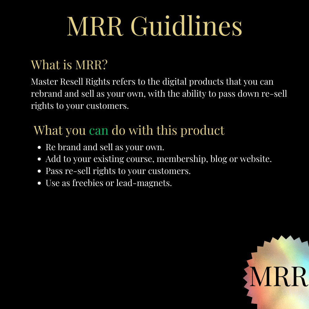 - Reselling Advantage: With Master Reselling Rights, you can capitalize on the eBook market and generate additional income streams.