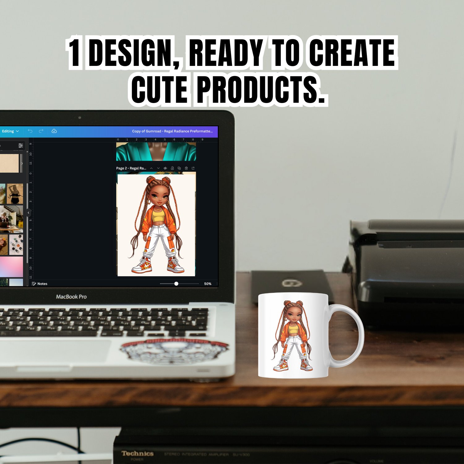 This is a single PNG file, perfect for when you need just the right character to complete your design. The illustration is meticulously detailed, from her braided hair to her cool sneakers, making it a standout graphic for any project.