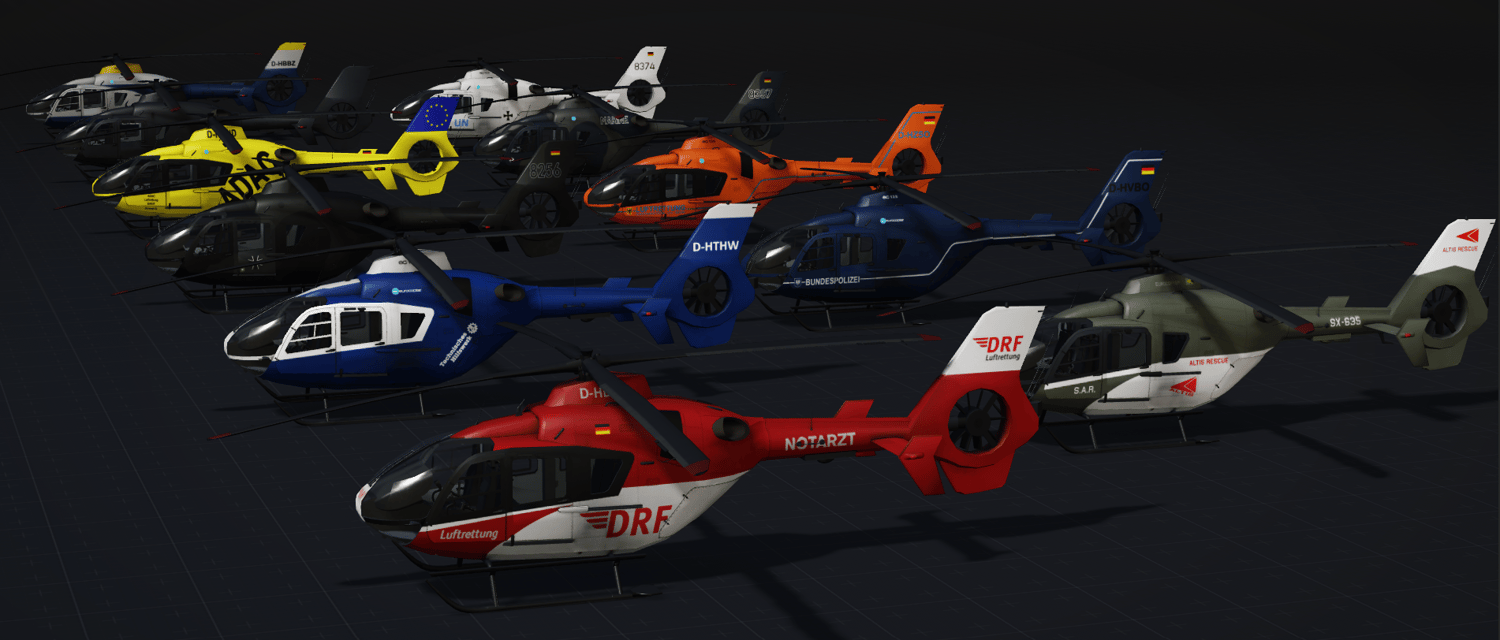The EC135 is a versatile and modern twin engine helicopter that is widely used for a variety of roles, including medical transport and law enforcement. It is known for its low noise signature and high safety standards, making it an excellent choice for operations in urban and sensitive environments.