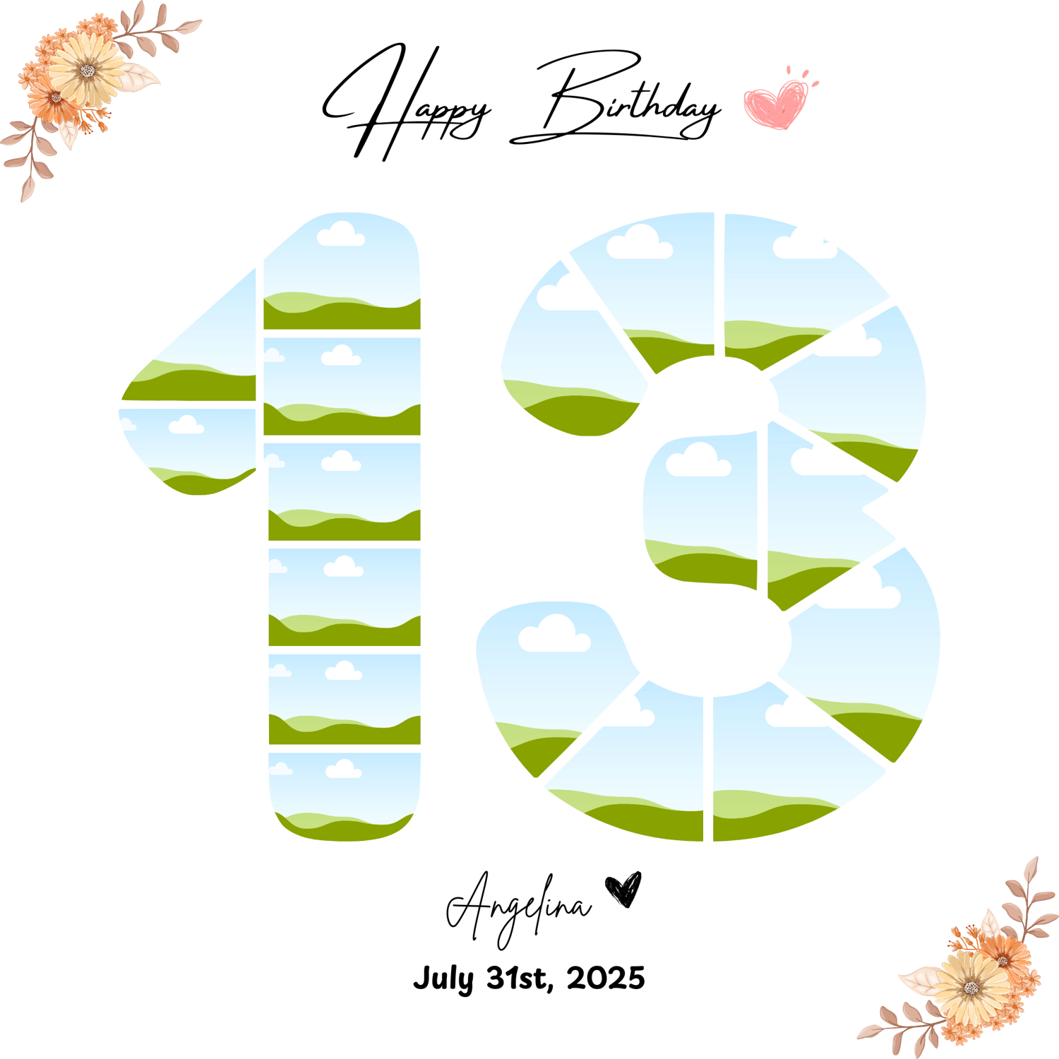 13 Years Birthday Photo Collage Template Happy Birthday Card Editable Canva Design Template