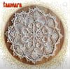 tAAmara _ pineapple play design incorporates the pineapples in different ways. The special feature of this pattern is the MERGED PINEAPPLES. The doily works to about 16 inches diameter when worked with crochet thread and a 2.00 mm hook. It captures the design elements beautifully,when mounted on a hoop and made into a suncatcher.