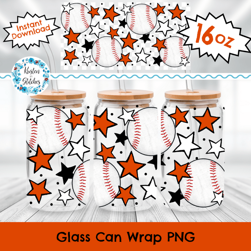 Baseball Team 16 oz Glass Can Wrap Transparent PNG, Baltimore Orioles Black and Orange