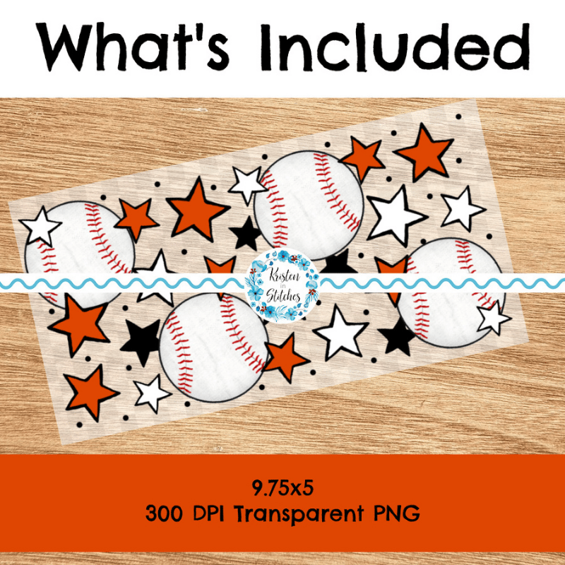 Features baseballs and stars in Baltimore Orioles team colors.