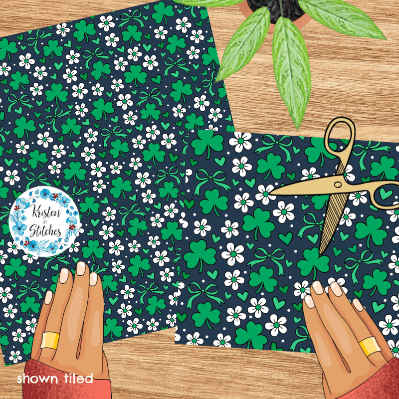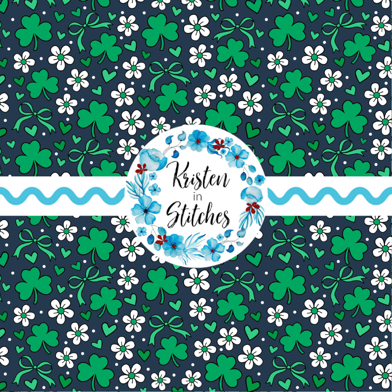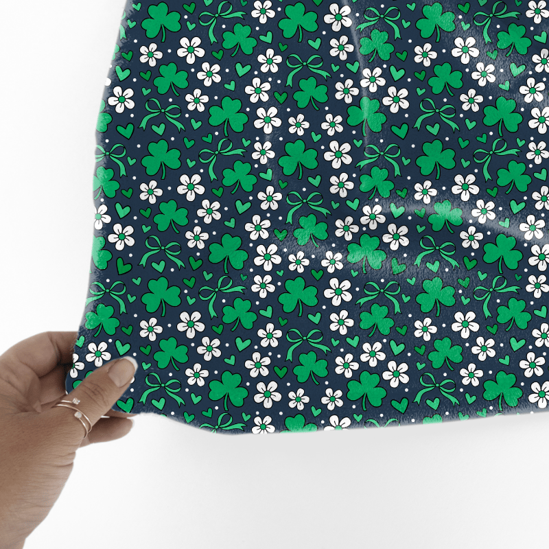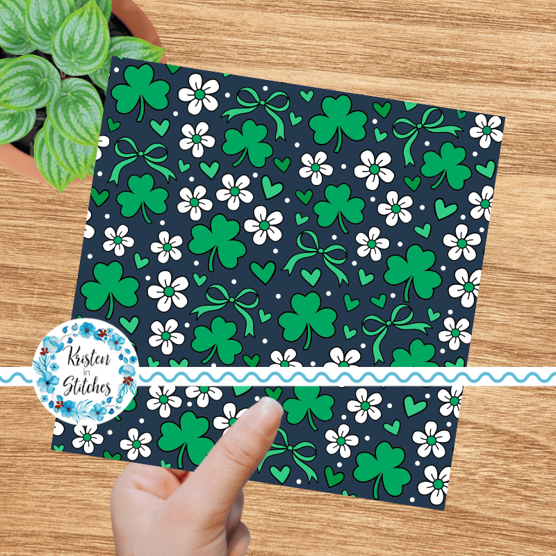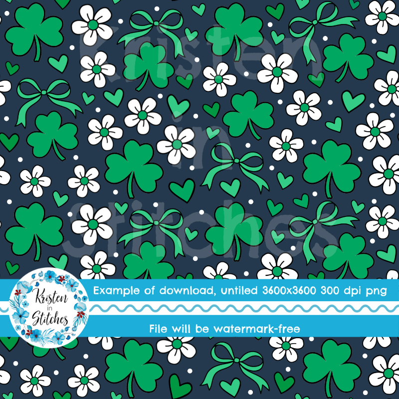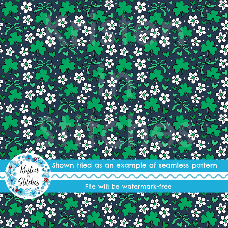 Shamrock Daisy Floral St. Patrick's Day Seamless Pattern, Coquette Bows and Hearts
