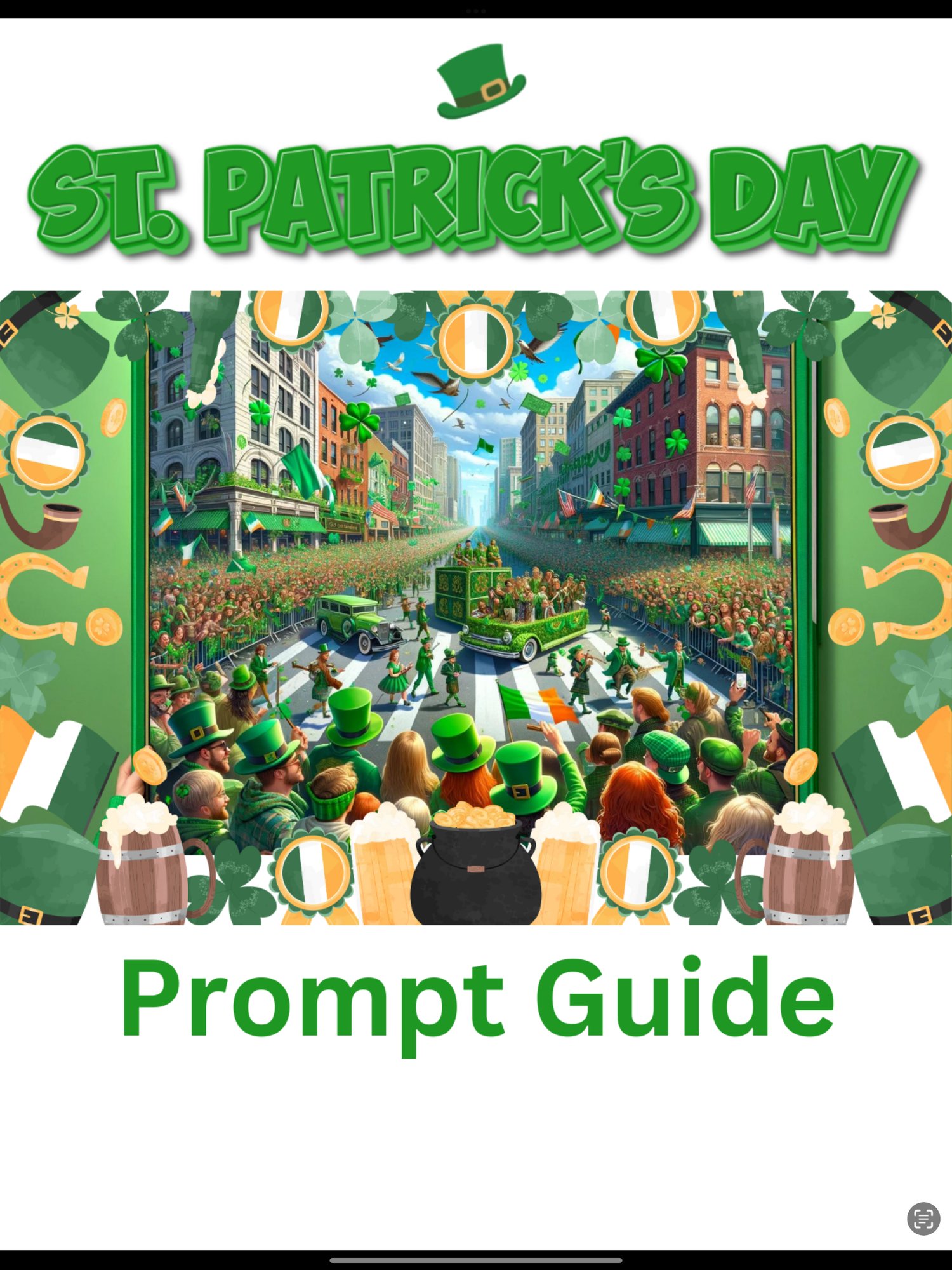 The prompt book is all about St. Patrick’s Day. The prompts and images were created in Chat GPT. You can use the prompts in other generators but results may vary.