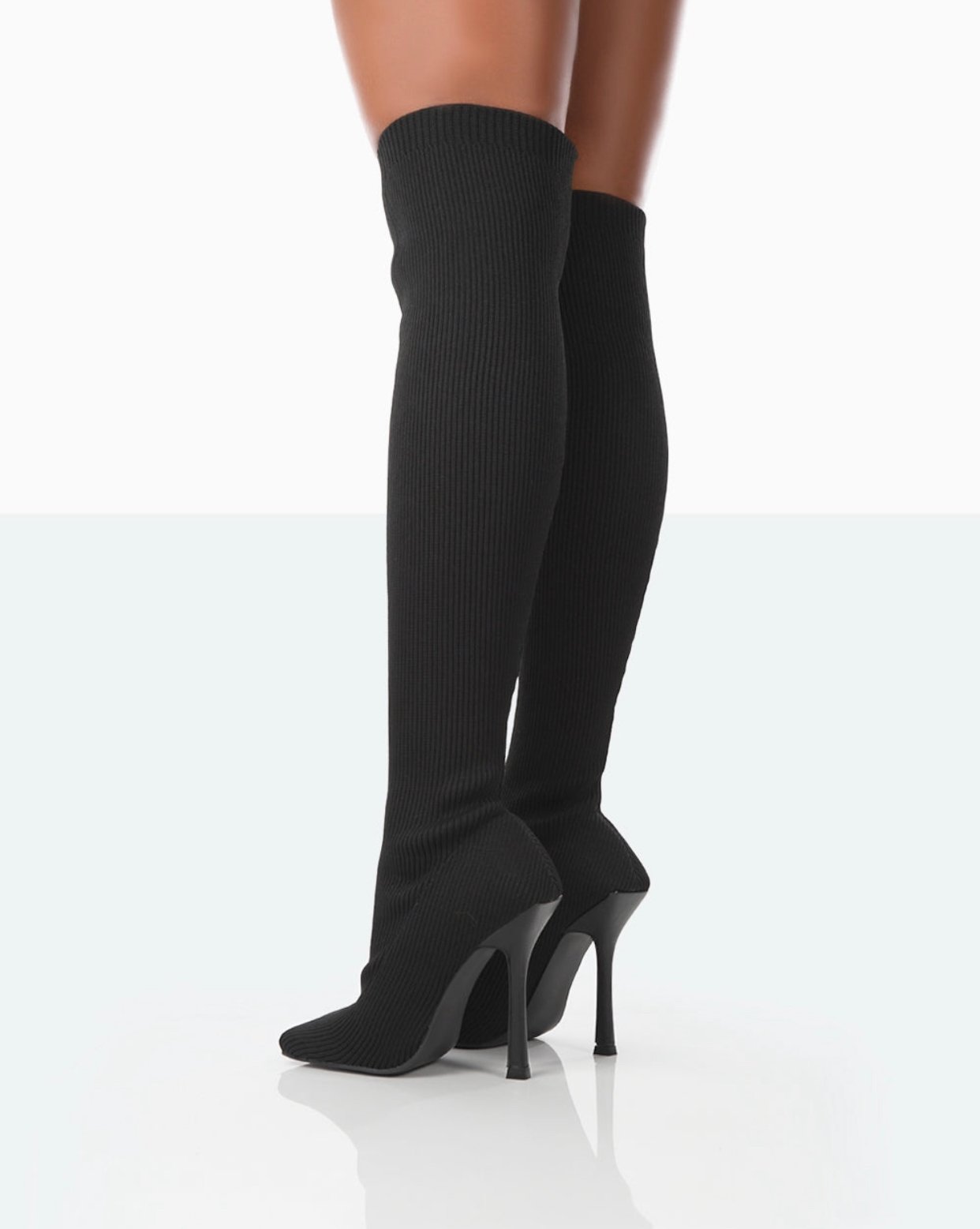 BLACK WIDE FIT KNITTED OVER THE KNEE BOOTS