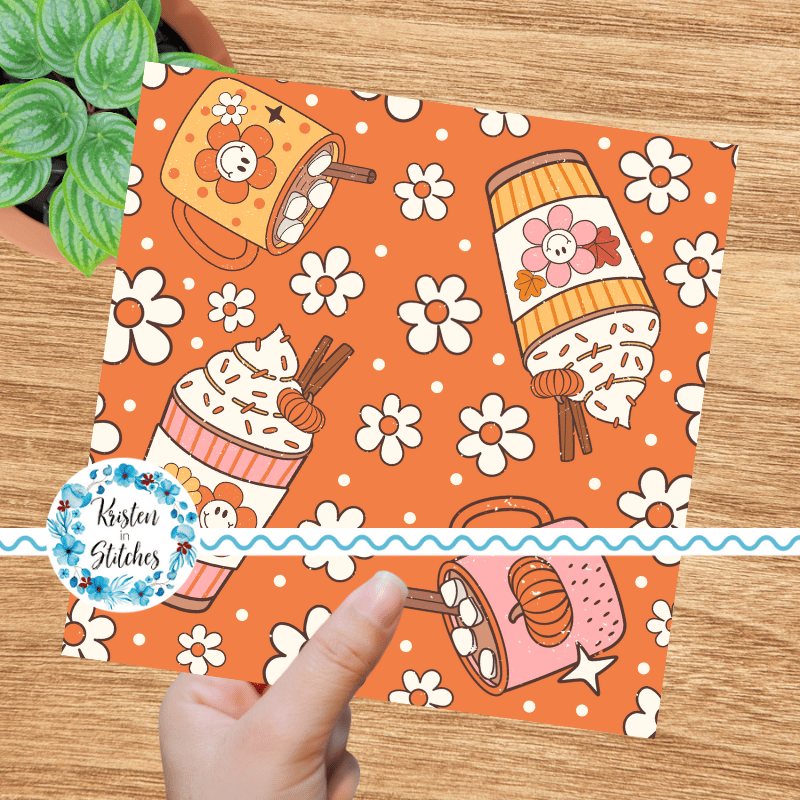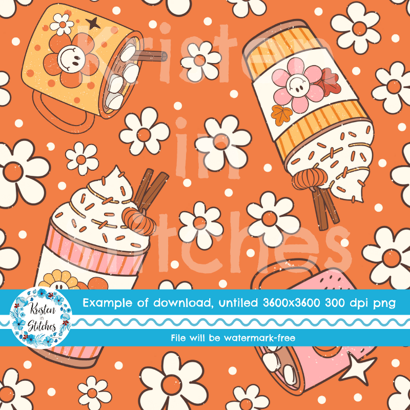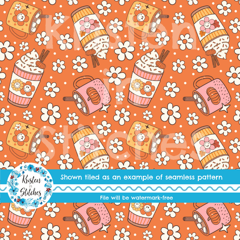 Pumpkin Spice Fall Harvest Coffee Cocoa Drinks Seamless Pattern