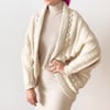 - Sample sweater yarn: Rowan Pure Wool worsted (100% wool, 220yds/200m, 100g/3.5oz) in color Cream Rowan Kidsilk Haze (70% mohair, 30% silk, 230yds/210m, 25g/0.9oz) in color White, 6 skeins