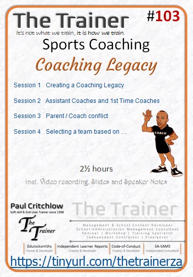 Methods, skills, sports code jargon, and the individual coaching competency of a coach/trainer and that of the sporting code and level, do vary, and often certain levels and skills may need to be mastered before taking on the next level.