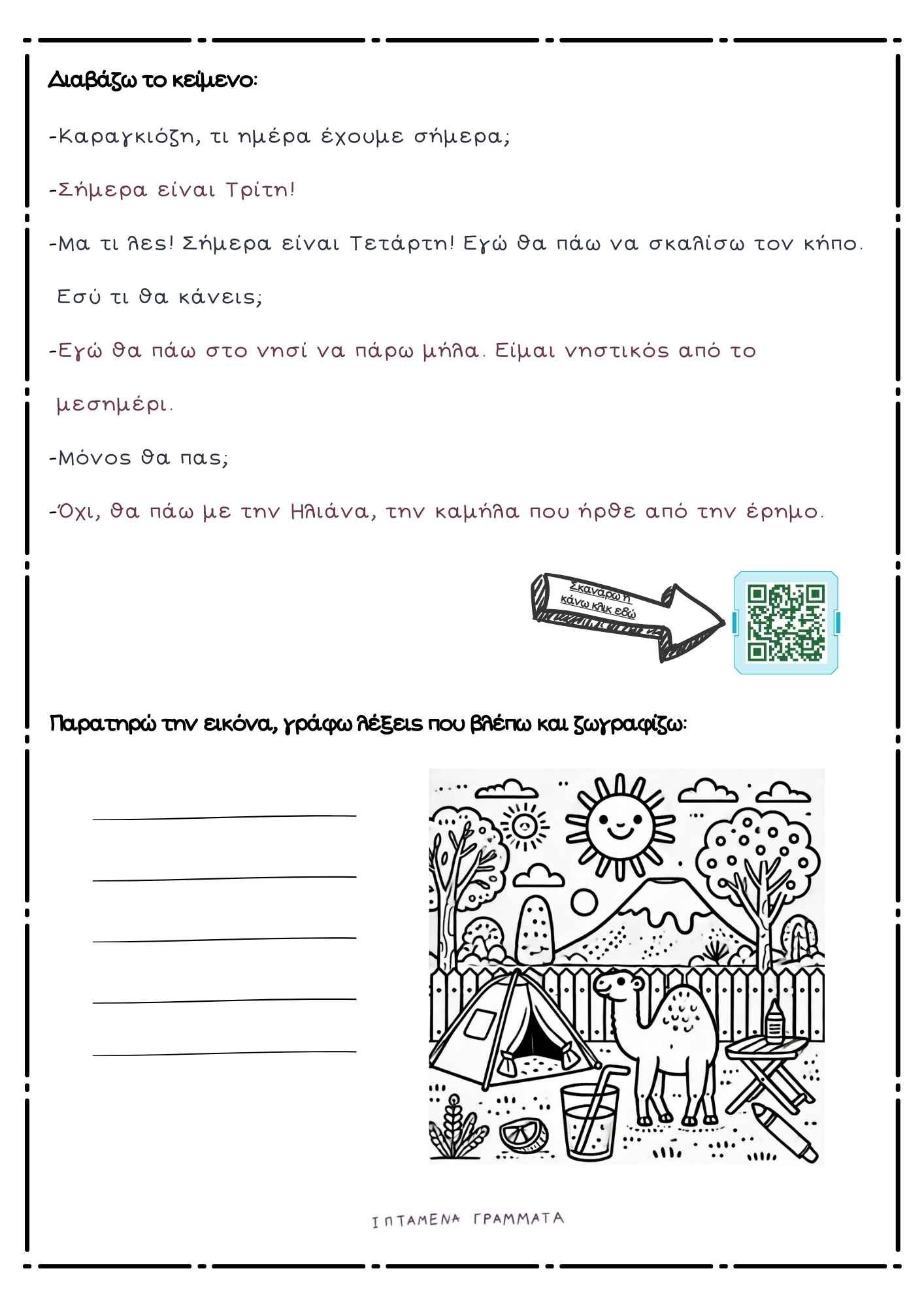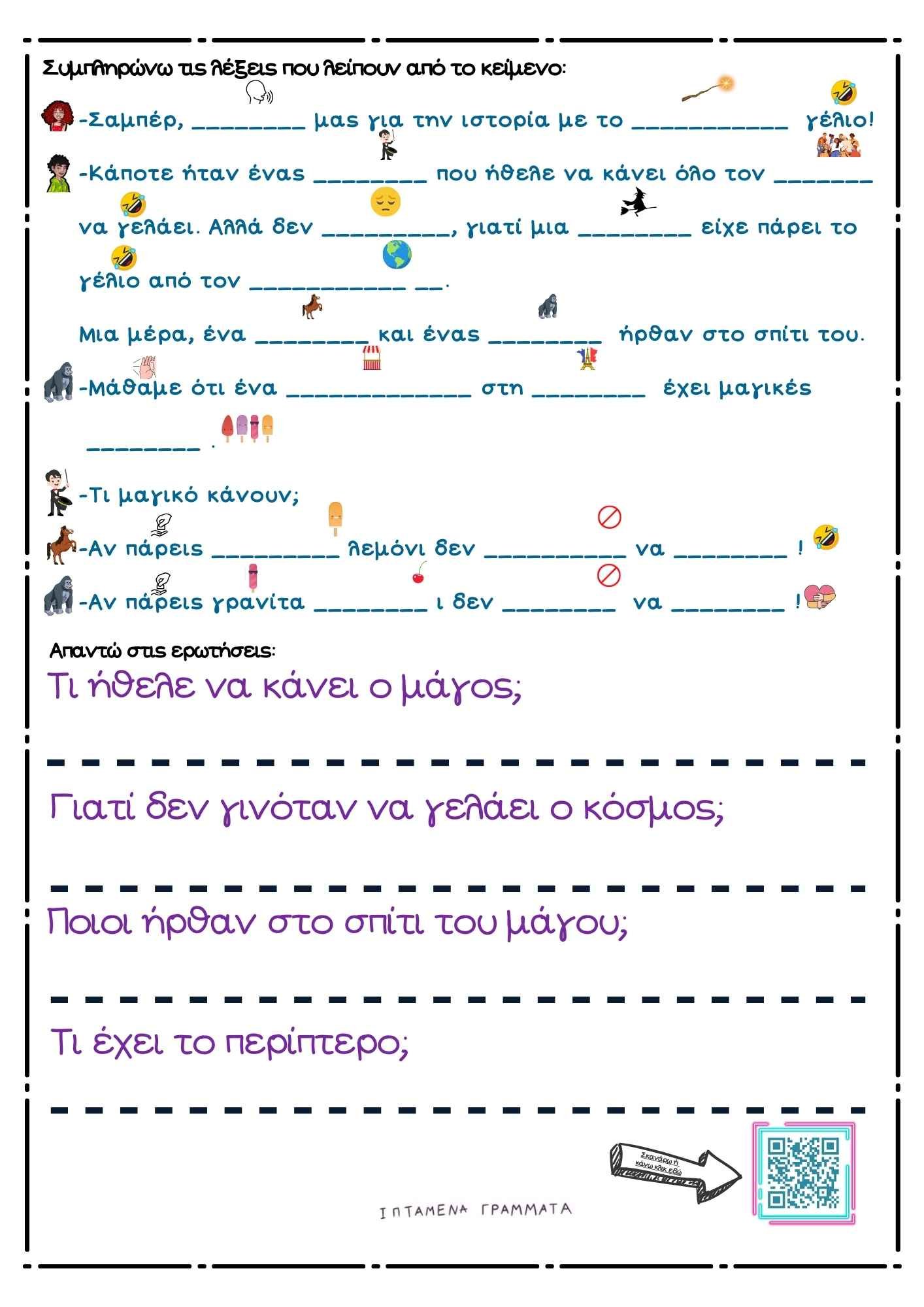 - εναλλακτικό κείμενο με ερωτήσεις για ανάγνωση, κατανόηση και έκφραση