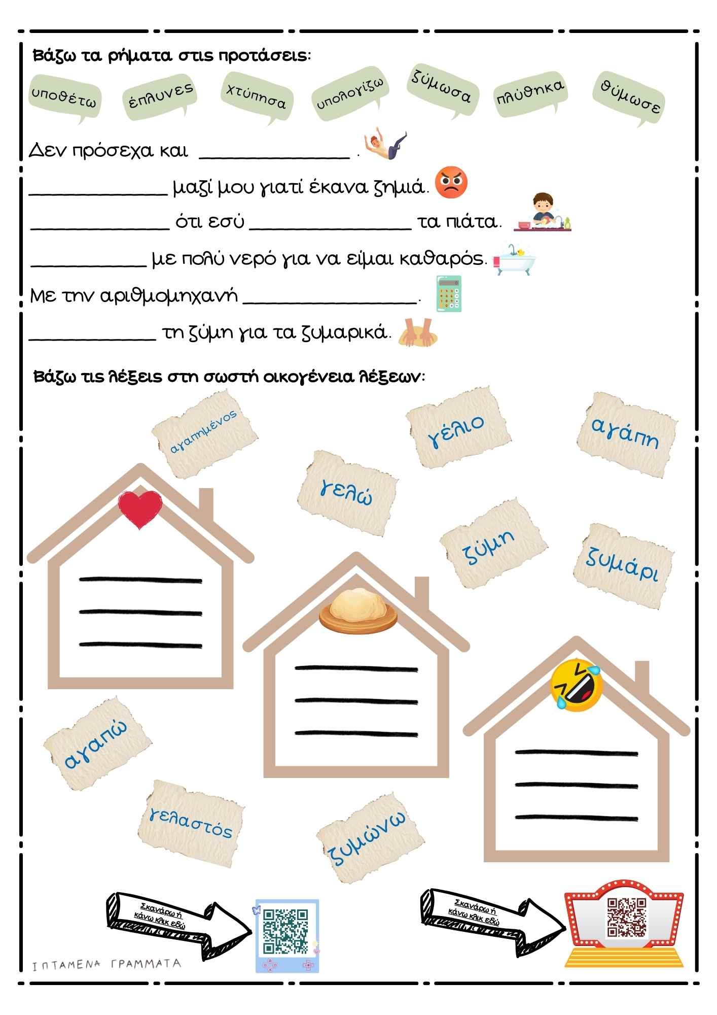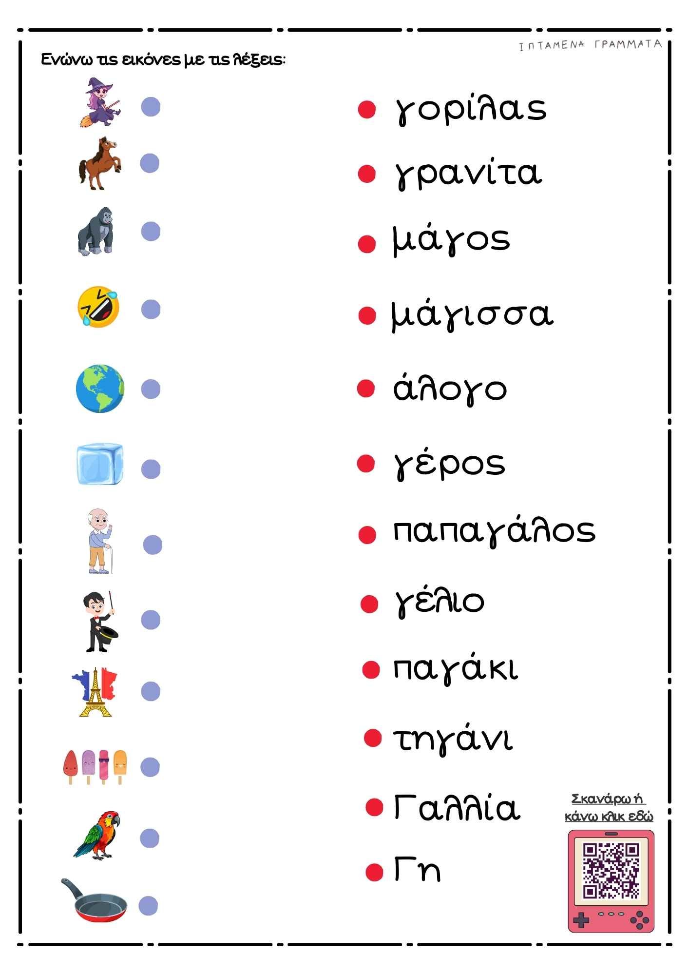 - QRcode με παιχνίδια στο WordWall ανά άσκηση με βαθμό δυσκολίας, για εμπέδωση, εξάσκηση αλλά και διασκέδαση!