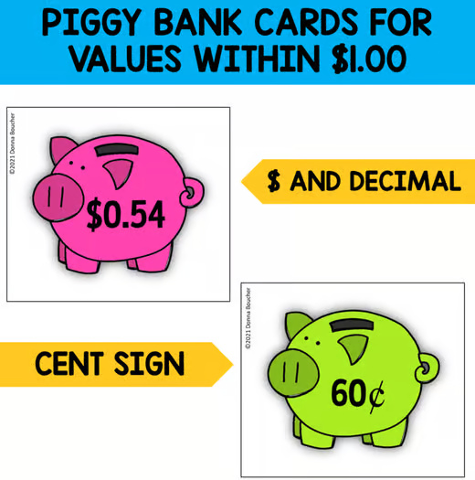 - Adding Piggy Bank Amounts – Add two piggy bank cards together.