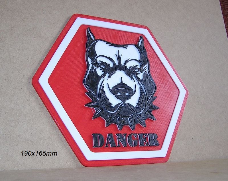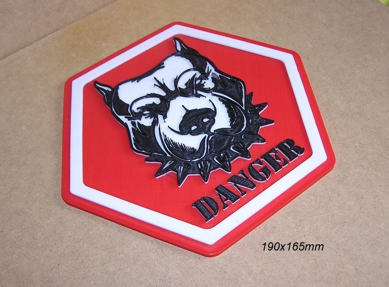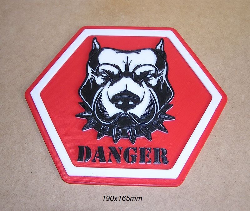 Sign, danger beware of dog model-5, these STL and Gcode files have been created to be printed in various colors with any FDM type printer. The color changes have been made with the Elegoo Neptune 3 Pro printer, but they can be printed on any printer.