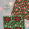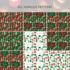 The Presents Under the Tree Digital Paper Pack is a collection of nine seamless patterns in festive red and green colors. The patterns all feature gift wrapped presents. Two of the patterns also include the phrase, “Merry Christmas” and “Feliz Navidad.”