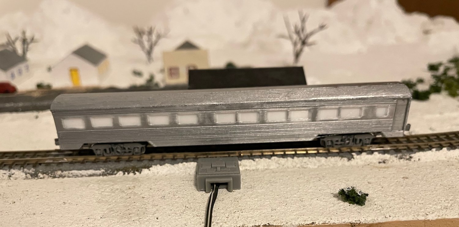 This is a model of a 40-foot flat car. The trucks/couplers I suggest for this model are Micro-Trains #954 (Bettendorf Trucks).