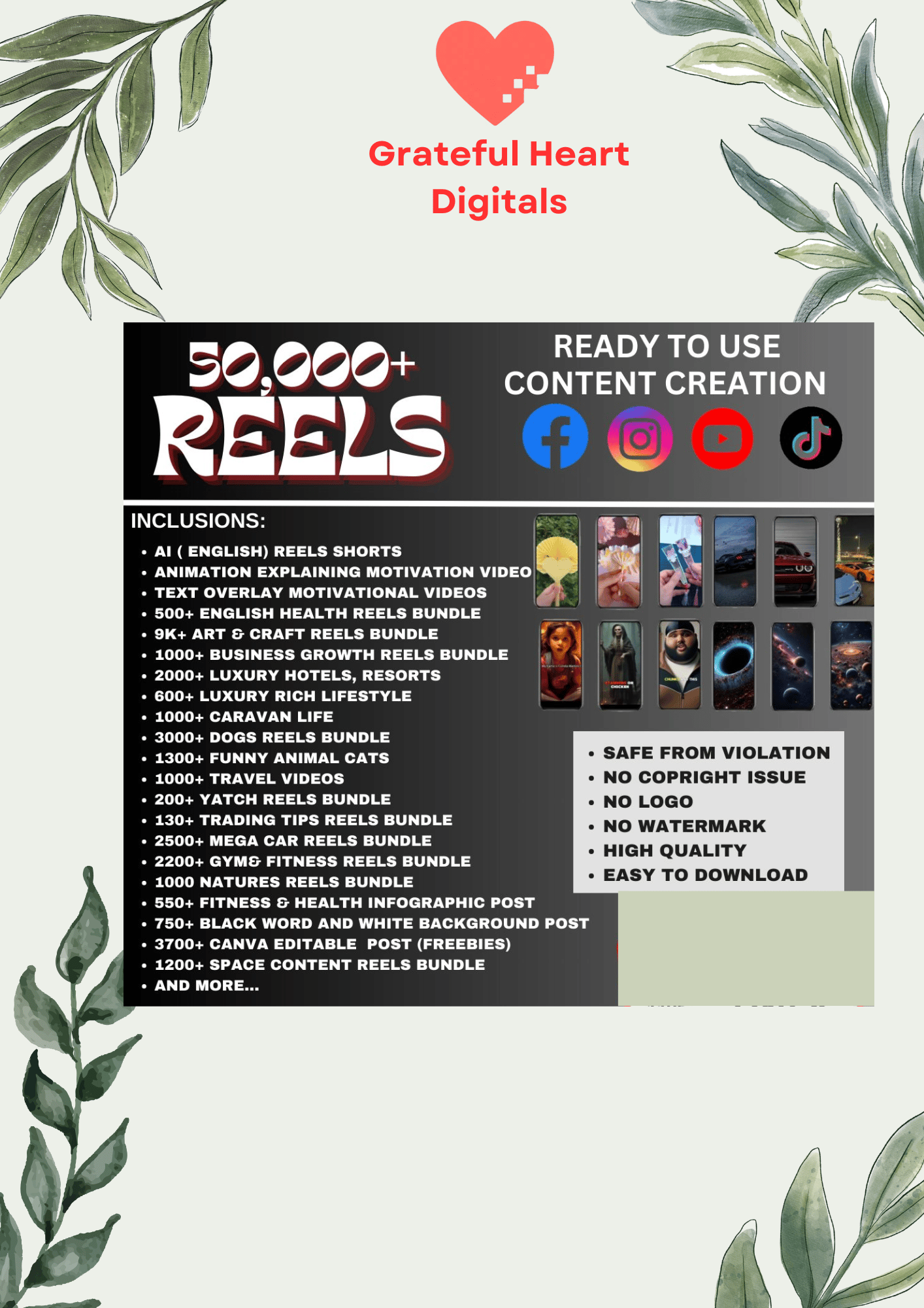 Why spend hours creating when you can have instant access to 50,000+ professionally crafted reels? Perfect for content creators, entrepreneurs, and social media enthusiasts who want to stand out without the stress. Grab your reels and let your creativity shine!