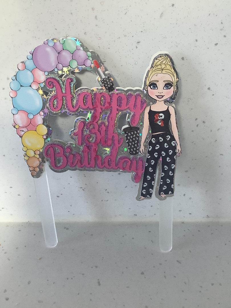 Happy 13th Birthday make up dolly cake topper , other ages and designs can be made , just message me.