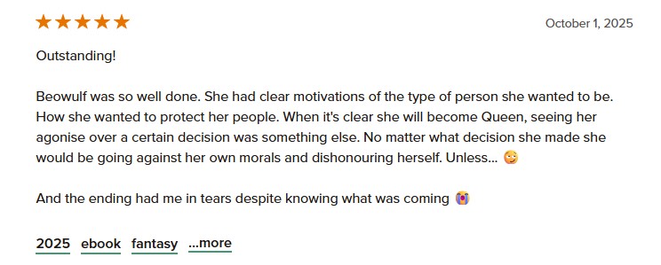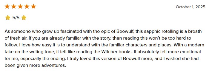 In this sapphic retelling of the Old English epic, Beowulf fights not just for victory, but for the right to wield her own destiny, defend her love and stand toe to toe against monsters that lurk in the dark.