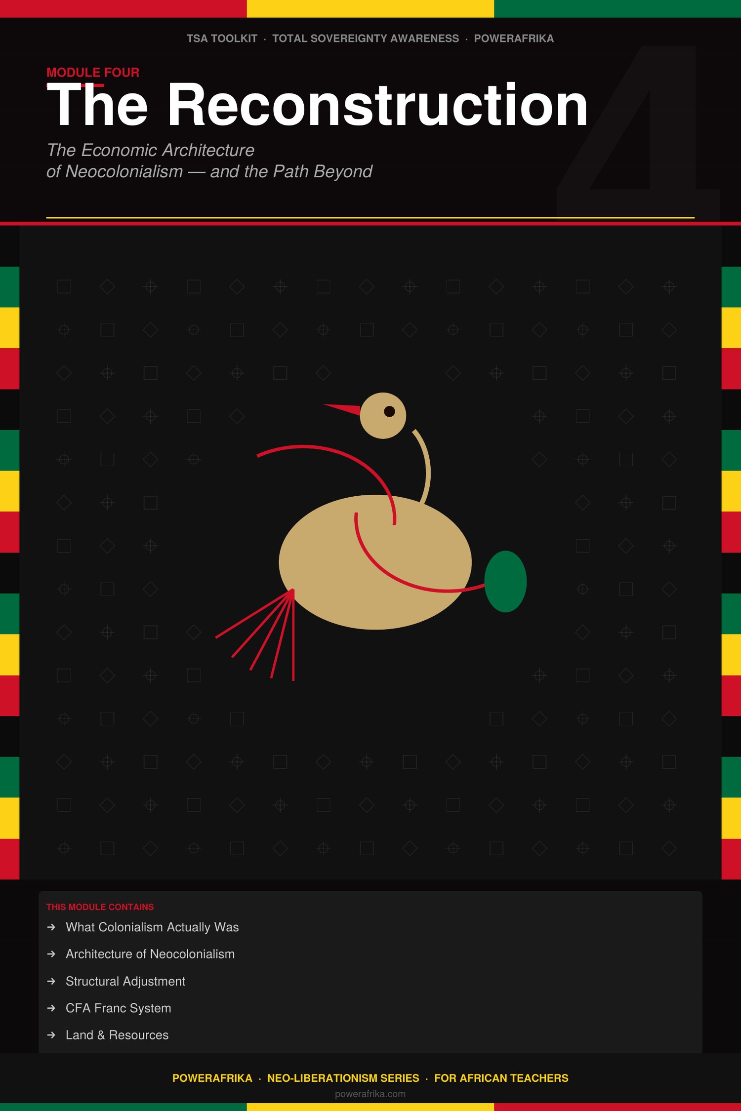 Tags: African education, decolonial teaching, Total Sovereignty Awareness, TSA Toolkit, PowerAfrika, professional development, neocolonialism, structural adjustment, CFA franc, Walter Rodney, Kwame Nkrumah, Thomas Sankara, African economics