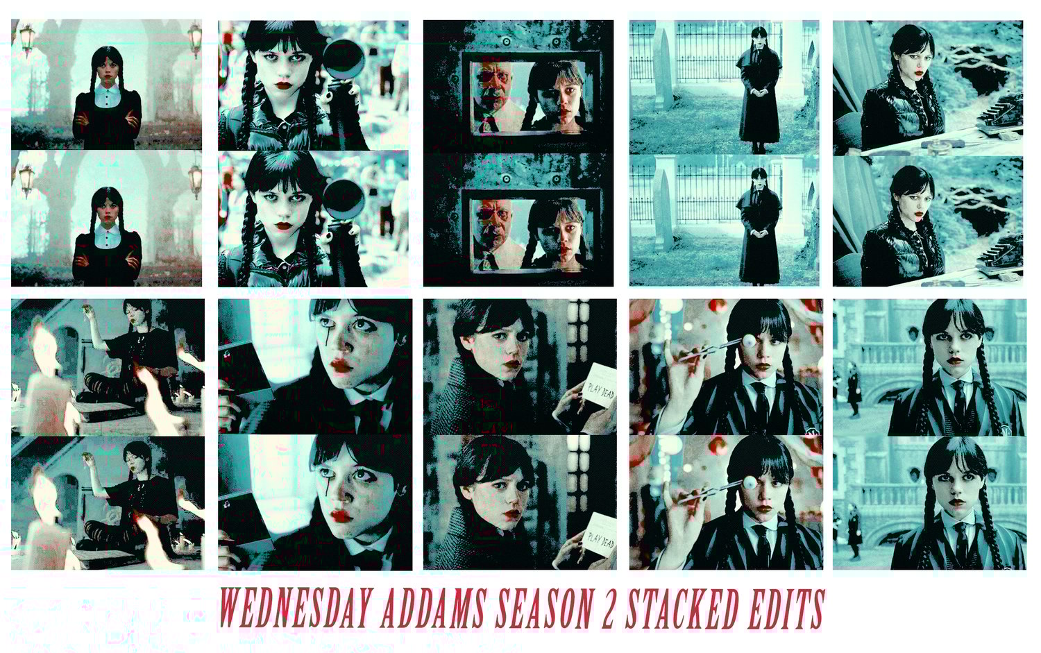10 simple stacked edits featuring Jenna Ortega as Wednesday Addams in Season 2