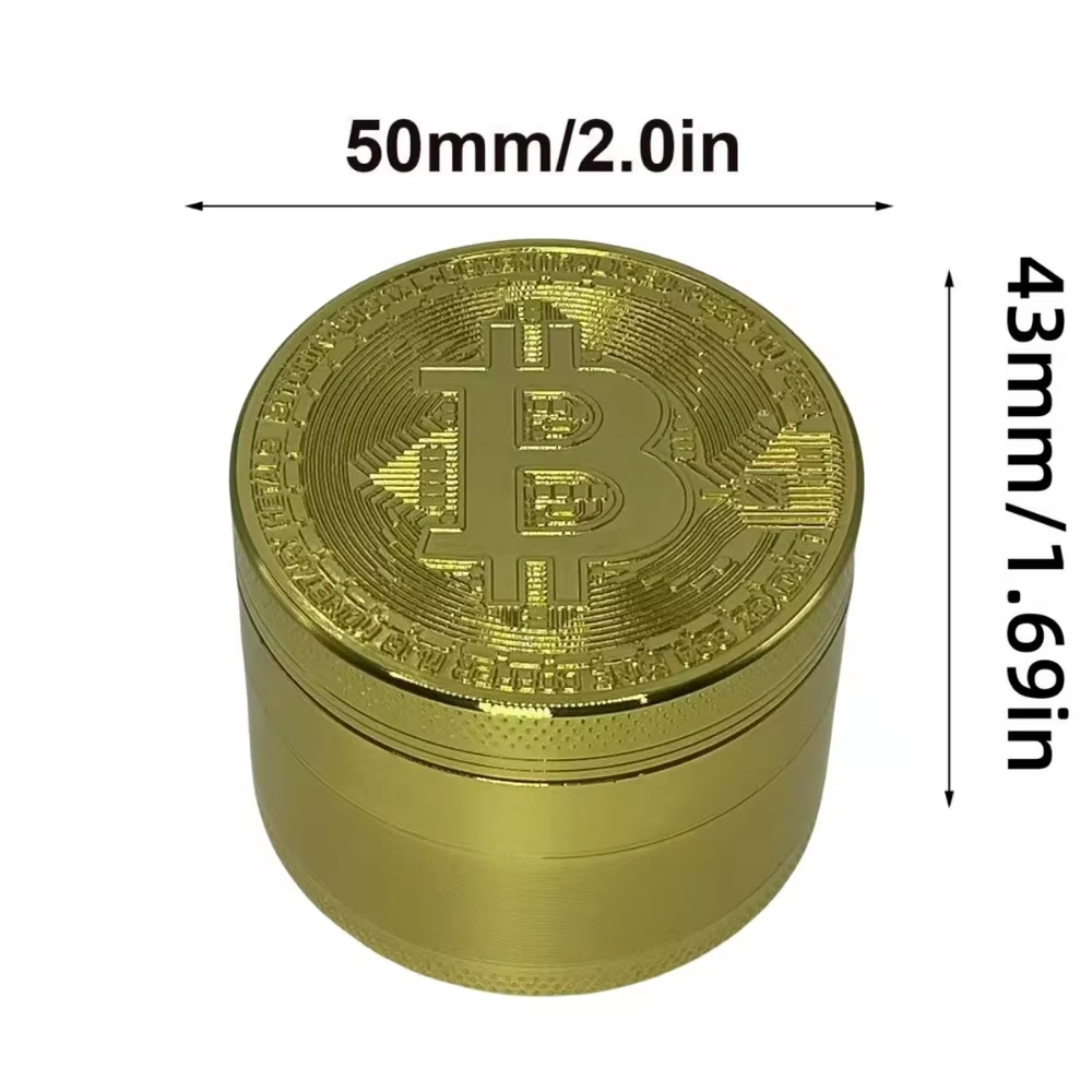 πͺ 50mm Bitcoin Gold Herb Grinder β 4-Layer Metal Spice & Tobacco Grinder | Kitchen & Smoking Accessory