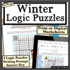 Make teaching critical thinking and problem-solving fun with these engaging, printable, or Easel logic puzzle activities about winter! This set includes 4 logic puzzles and a writing prompt perfect for problem-solving and critical thinking. Quick and easy setup makes these activities perfect for centers or substitute days in grades 4 - 6.
